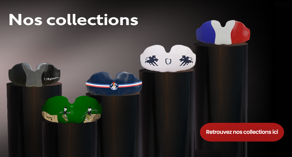 En ce qui concerne la personnalisation et les collections, la base du protège-dent est préalablement définie avec une couleur de base. Ensuite, nous appliquons un autocollant spécialement conçu selon le design de votre choix, ce qui confère à votre protège-dent un rendu unique et résistant dans toutes les situations imaginables. Que ce soit pour des besoins sportifs ou de loisirs, notre solution de personnalisation vous permet d'exprimer votre style tout en garantissant la protection nécessaire.